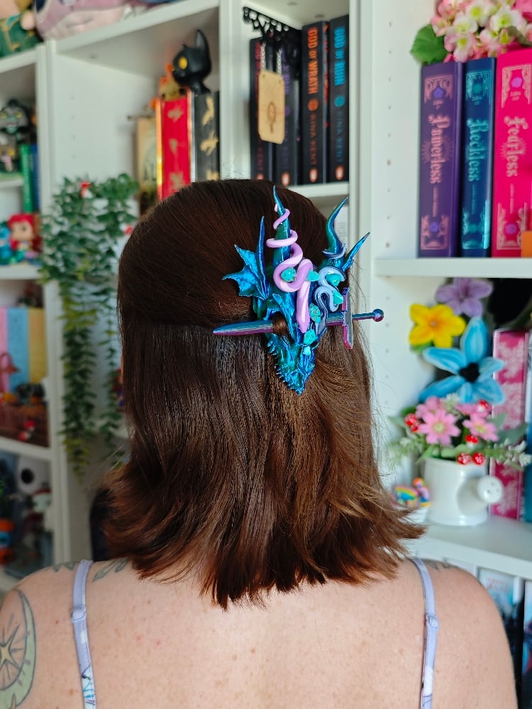 Horquilla dragón con serpientes y piedras turquesas