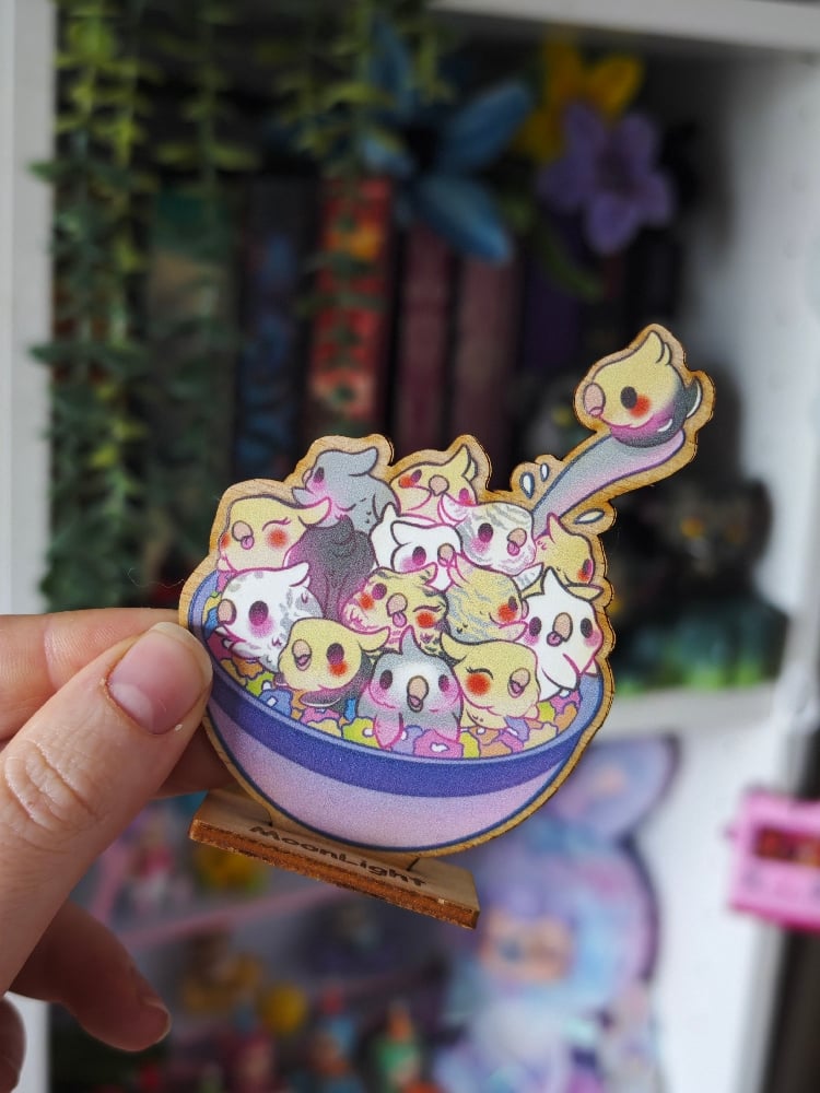 Standee de madera ninfas cereales