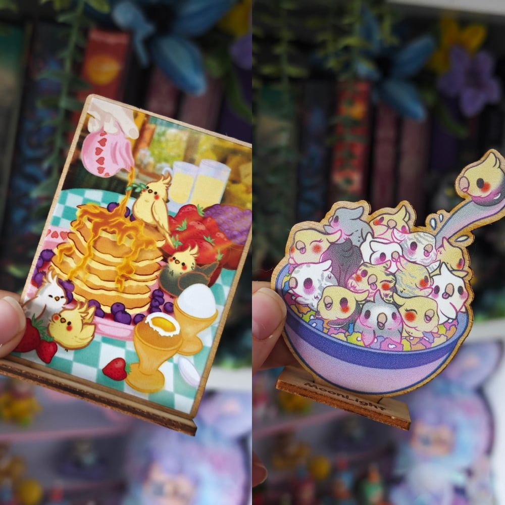 Standee desayuno con muchas ninfas
